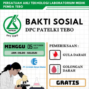 PT. Arvindo Karya Utama mensponsori alat kesehatan dalam kegiatan Bakti Sosial DPC Patelki Tebo pada Minggu 05 Oktober 2025 mulai pukul 06.00- selesai.